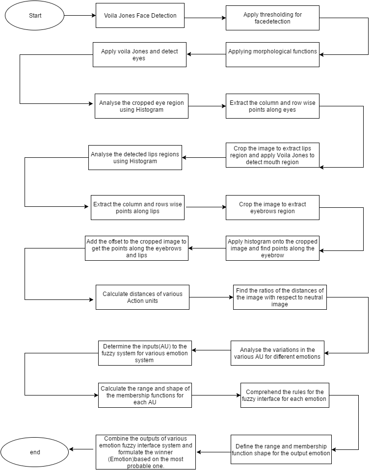 Facial expressions analysis plays a significant role for human computer interaction. In recent years, face emotion recognition is most important application of computer vision that can be used for security, entertainment and human machine interface. Classification of emotional features depends upon gesture, pose, facial expression, speech and etc. In this project a fuzzy method was implemented to detect emotion. The technique involves extracting mathematical data from some special regions of the face. The extracted mathematical data are then fed to a fuzzy rule based system along with the signals received from brain. These additional signals that are fed along mathematical data provide a better prediction of emotions.